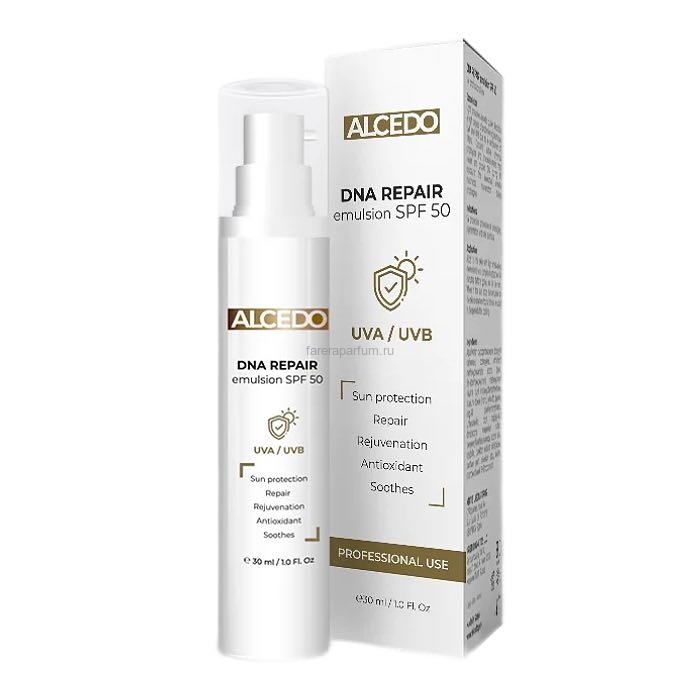 Описание Alcedo DNA Repair Emulsion SPF 50 ДНК Восстанавливающая эмульсия SPF 50 30 мл.