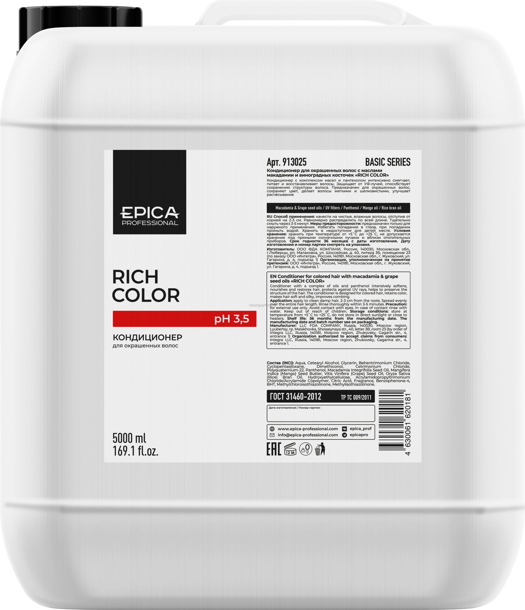 Описание Epica Professional Rich Color Кондиционер для окрашенных волос 5000 мл.